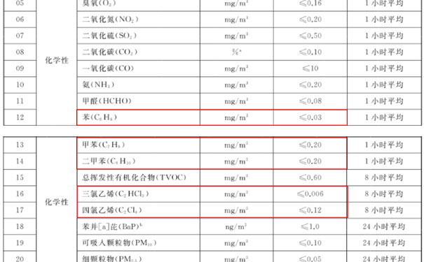 一:新標準增加了三氯乙烯、四氯乙烯兩個參數,提出了限值要求,并且降低了苯的濃度限值。